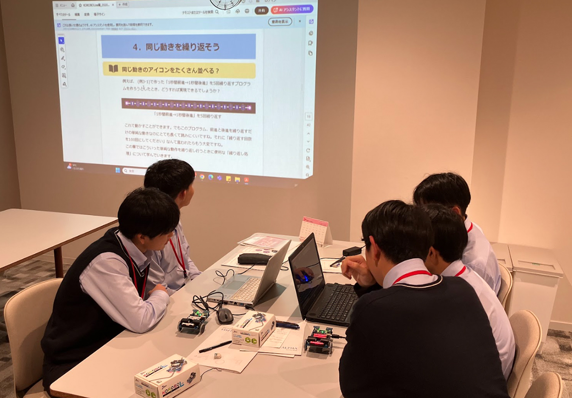 ITと半導体の二つの技術分野でエンジニアが、どの様な課題に対して仕事をしているのかご説明させていただいた後、プログラミングを通じてモノづくりを体験していただきました。高校生からは、モノづくりに興味があったが体験してみて楽しかった、自分の将来が決めきれていなかったが今何をするべきか分かった気がした、半導体をもっと知りたいと思った等といったお声をいただきました。素直に向き合う姿勢や、学びたいと吸収する表情は輝いていて今後の可能性を楽しみに感じました。